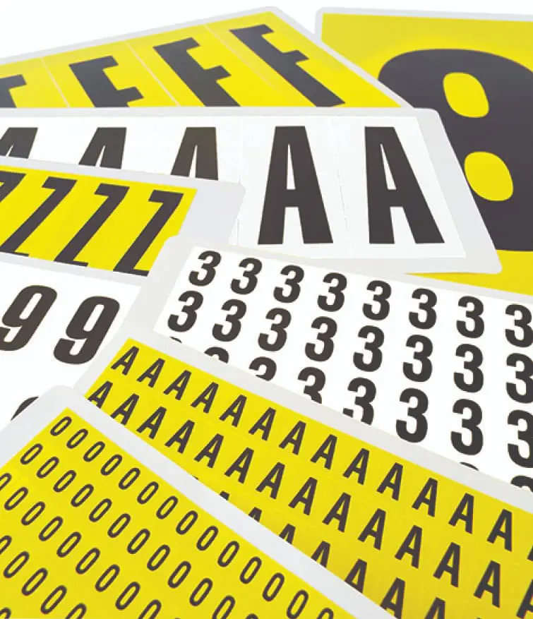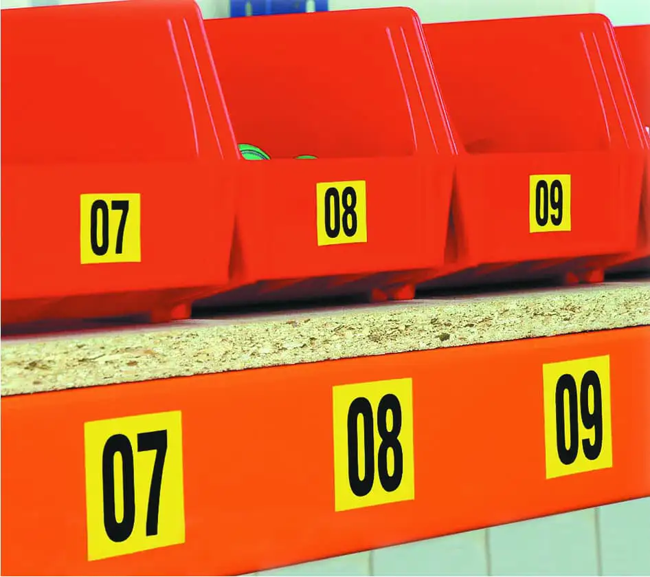 Selbstklebende Buchstaben und Schilder verhindern Fehler, die durch schlechte Handschrift verursacht werden können, und gewährleisten gleichzeitig eine einfache Identifizierung in Lager und Produktion 20 Kennzeichnung von Regalen, Gestellen, Körben.