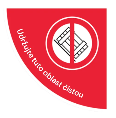 AT-SD03.FK29.900 | Selbstklebende flache Antirutsch-Markierung (Viertelkreis), ''Paletten lagern verboten'' – Folie, 900×900 mm |