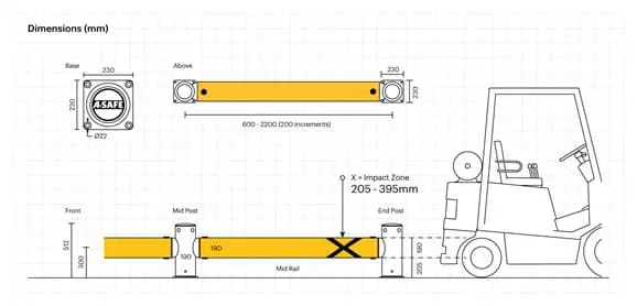 DieiFlex Single Traffic Barrier wurde entwickelt, um Mauerwerk und Metallkonstruktionen, Maschinen und Geräte vor Schäden zu schützen, die durch den Aufprall von Lagertechnikgeräten in mittelstark bis stark frequentierten Bereichen verursacht werden .