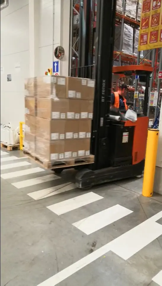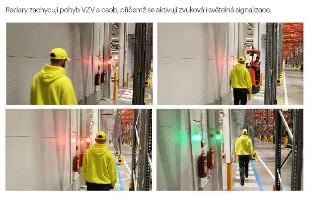 Das System eignet sich besonders für unübersichtliche Bereiche wie Gangkreuzungen, Ausgänge von Ladestationen oder Durchgänge zwischen Hallen. Es erkennt herannahende Personen und Fahrzeuge in einer Entfernung von 4–8 m (13–26 ft) und schlägt sofort Alarm.