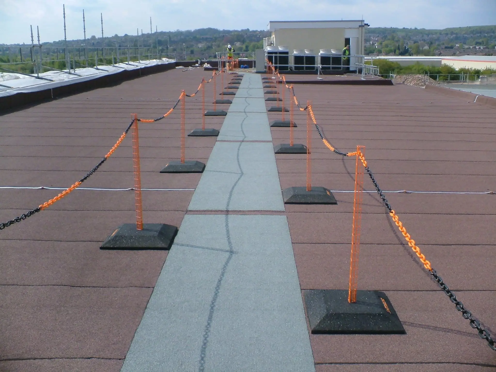 Der Drahtpfosten aus Edelstahl ist eine gute Wahl für die Absperrung ungesicherter Bereiche von Flachdächern.