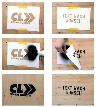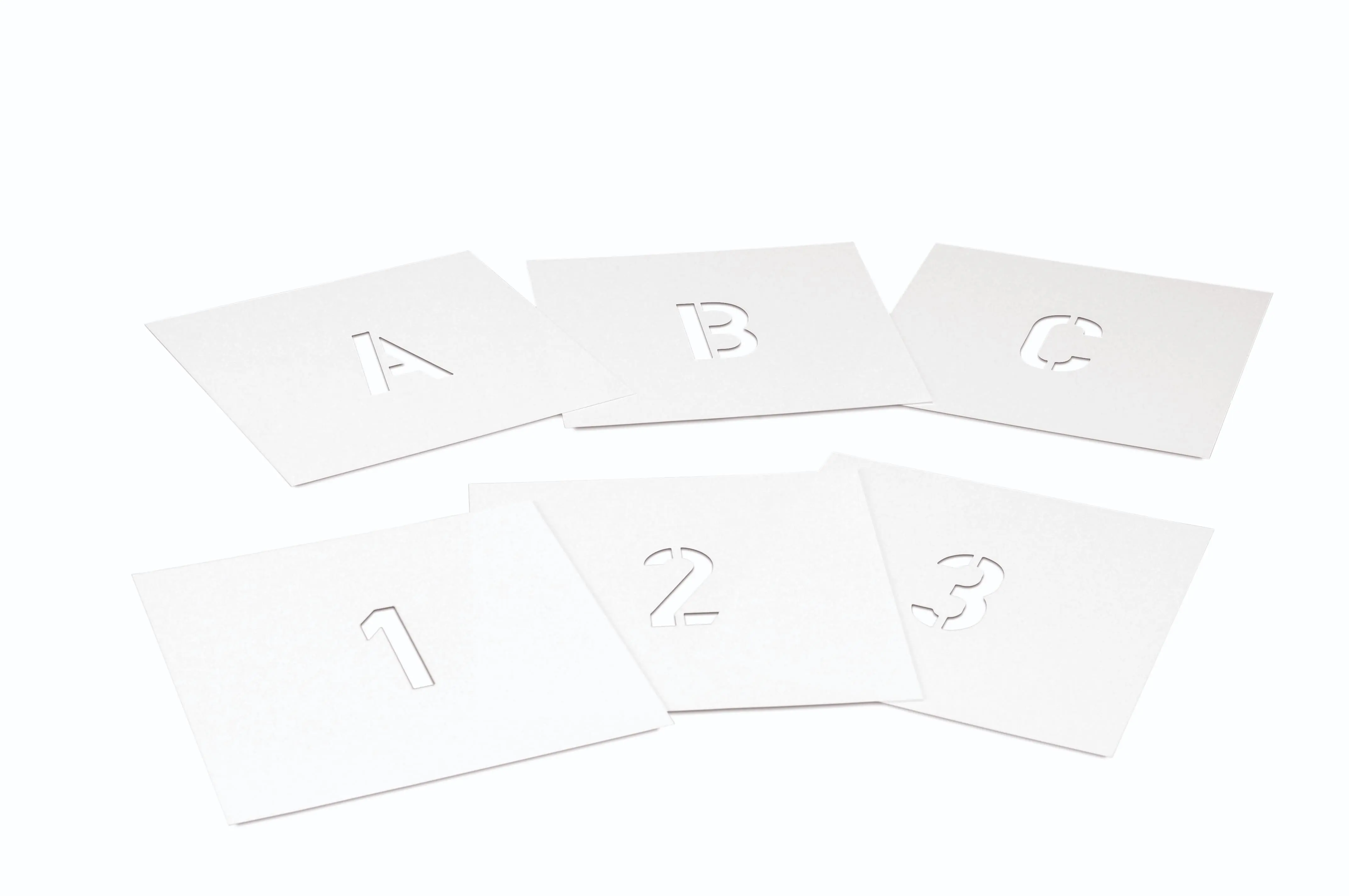 Wir stellen auch Sprühschablonen mit Ihrem Logo, Zahlen, Schriftzügen oder Piktogrammen her. Zusätzliche Materialien wie Magnetfolien sind auf Anfrage erhältlich.