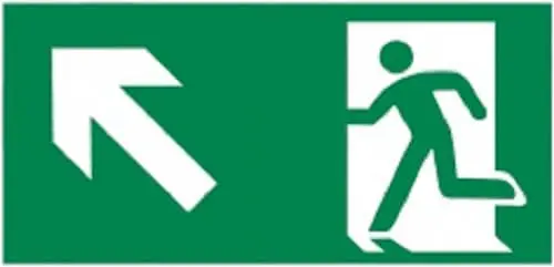 AT-SR42.PEN90.200 | Rettungskennzeichnung, Notausgang aufwärts links – Nachleuchtender Kunststoff, 400×200 mm |
