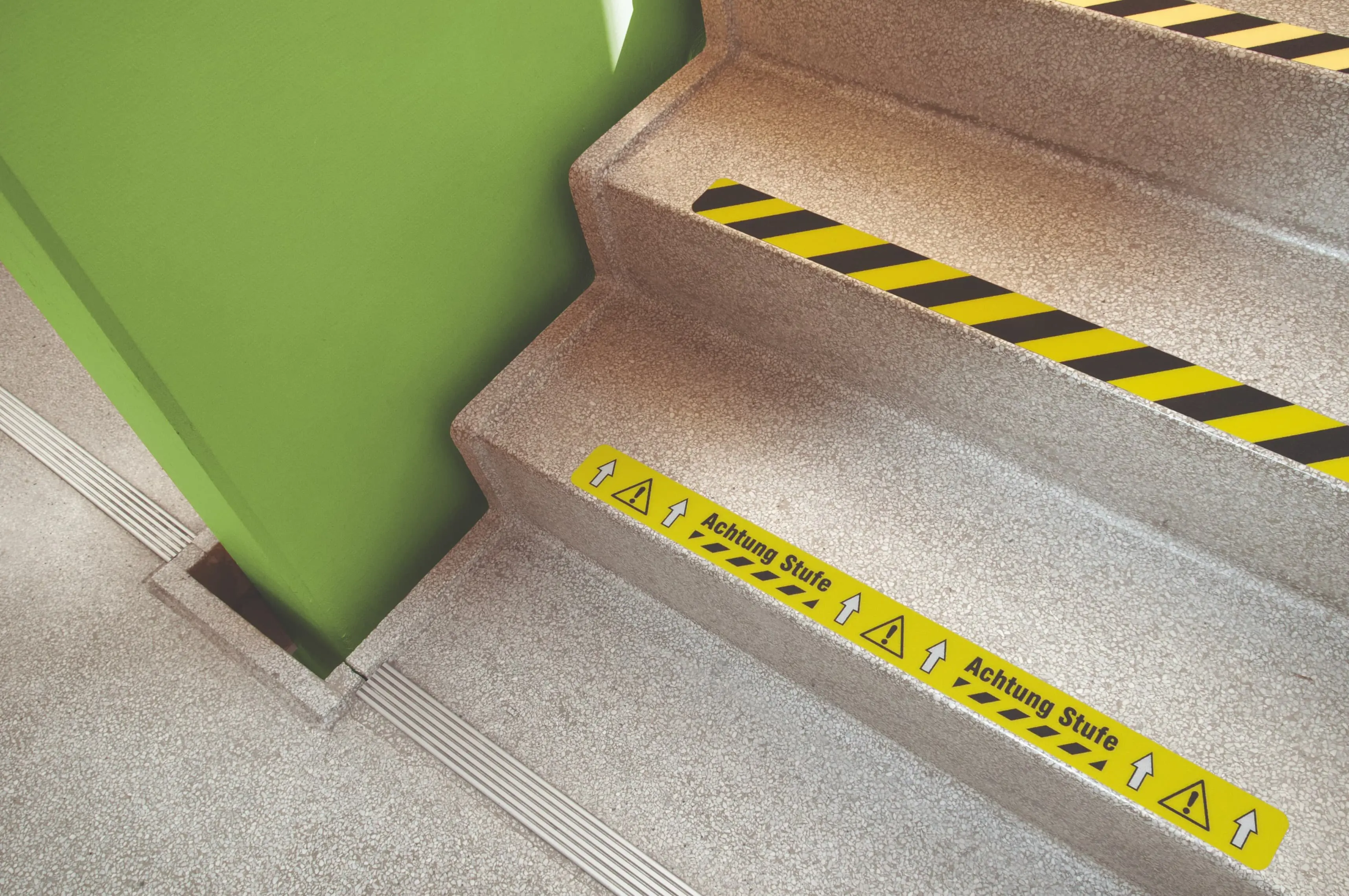 Dieuniversell bedruckte Bodenmarkierung ist rutschfest (Rutschfestigkeitsklasse je nach Materialwahl) und sehr einfach zu verlegen. Auch Markierungspunkte und Palettenmarkierungen sind aus demselben Material erhältlich.