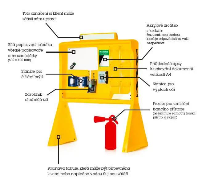 Das Hinweisschild ist ein innovatives Informationszentrum für Sicherheit und Gesundheitsschutz. Es eignet sich ideal als Treffpunkt, für Anweisungen oder als "Sie stehen hier"-Hinweisschilder. Sie eignet sich als Fläche für die Aufstellung von Lockout/Tagout-Stationen.
