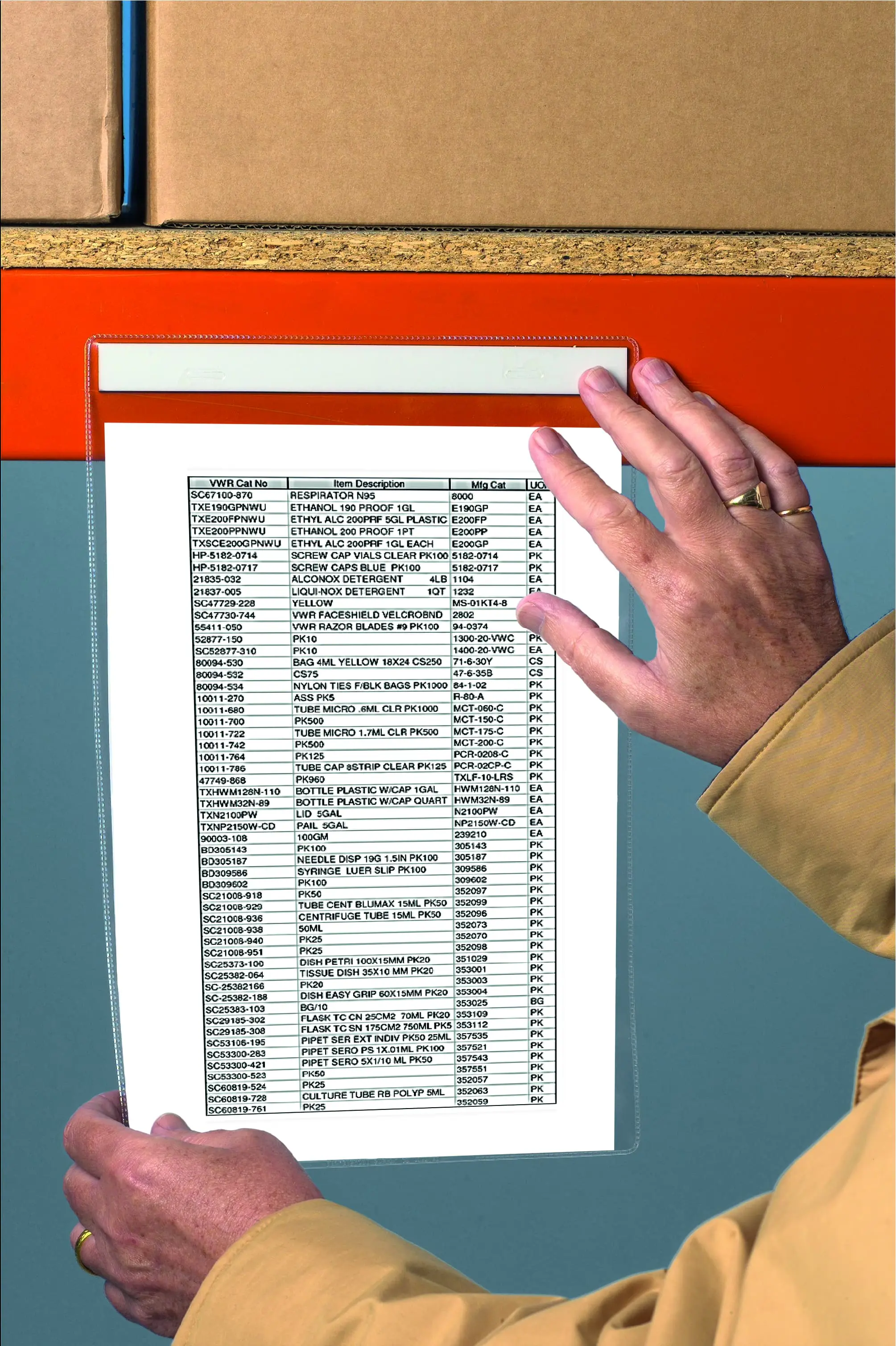 DieDokumententaschen in Industriequalität können sowohl horizontal als auch vertikal angebracht werden. Sie sind transparent und daher ideal für die Wiederanbringung auf Stahloberflächen.