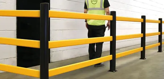 Die eFlex-Fußgängerbarriere ist nicht dafür ausgelegt, den Aufprall von Flurförderzeugen aufzufangen. Sie ist für eine maximale statische Belastung von 2kN ausgelegt, was dem Gewicht von zwei Personen entspricht, die sich mit einem Gewicht von 200 kg darauf stützen.