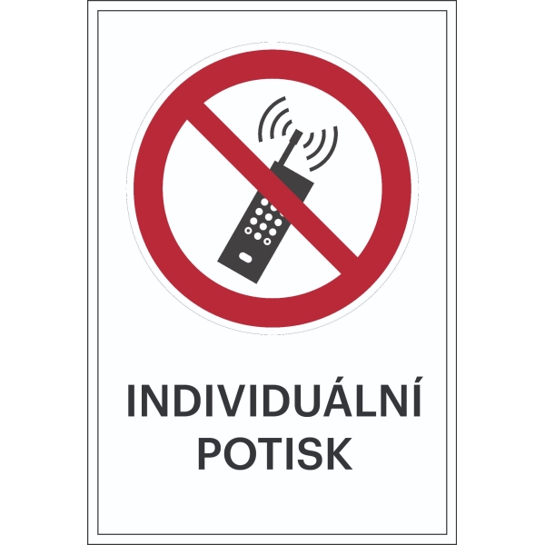 AT-SVK20.FAB99.150 | Verbotskennzeichnung, eingeschaltete Mobiltelefone verboten, individueller Text – Folie, 100×150 mm |