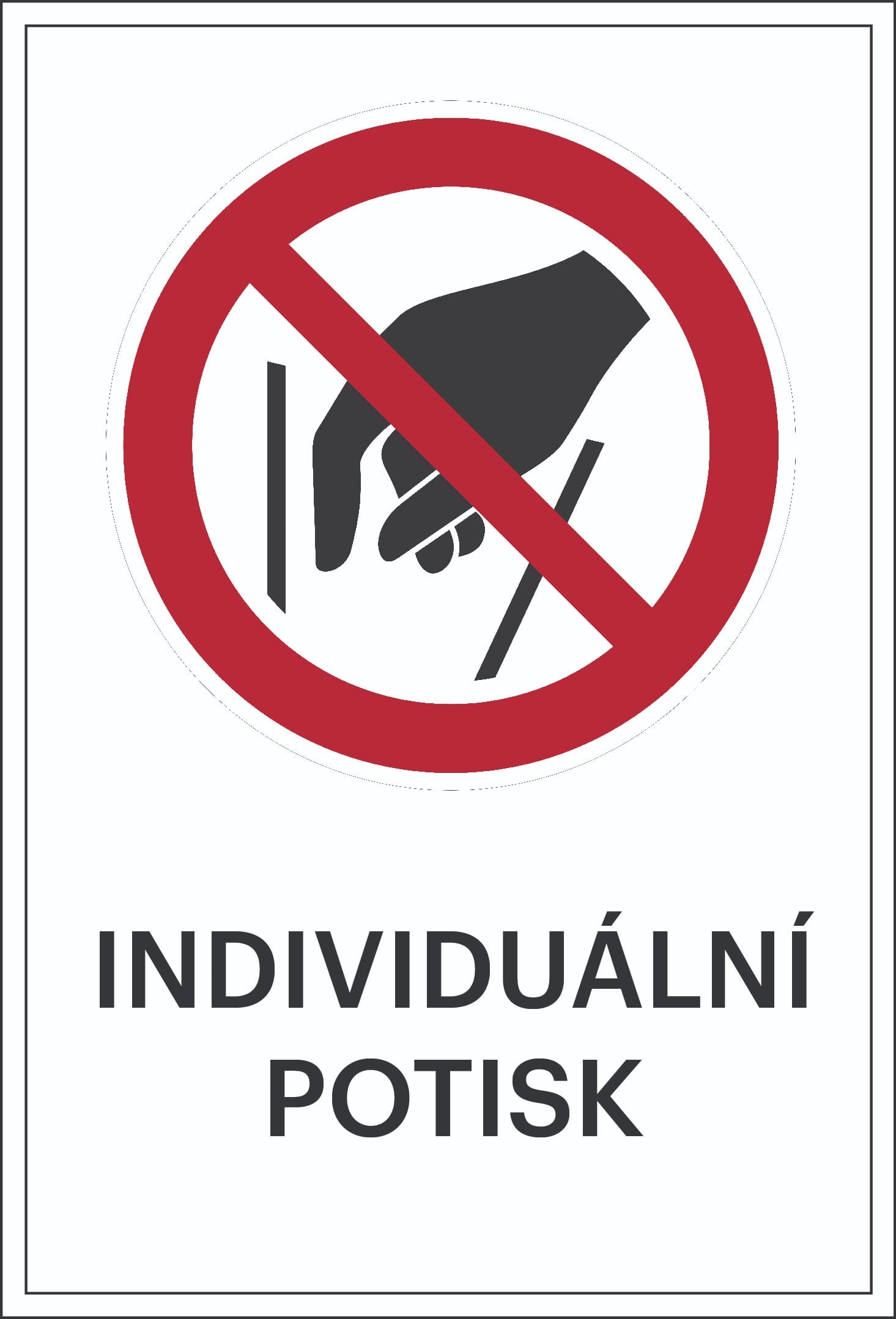 AT-SVK08.FAB99.150 | Verbotskennzeichnung, nicht hineingreifen, individueller Text – Folie, 100×150 mm |