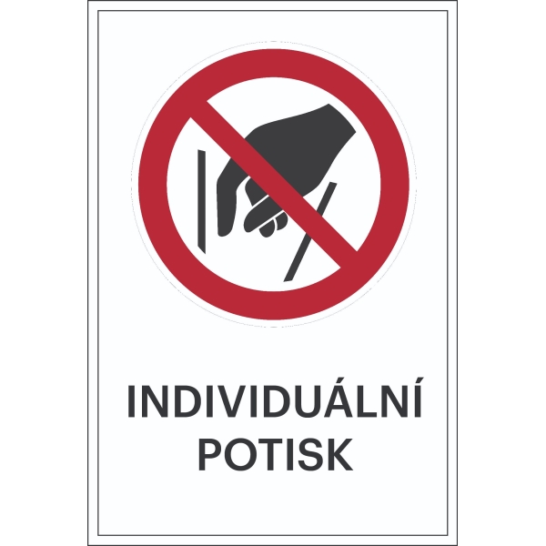 AT-SVK08.FAB99.150 | Verbotskennzeichnung, nicht hineingreifen, individueller Text – Folie, 100×150 mm |