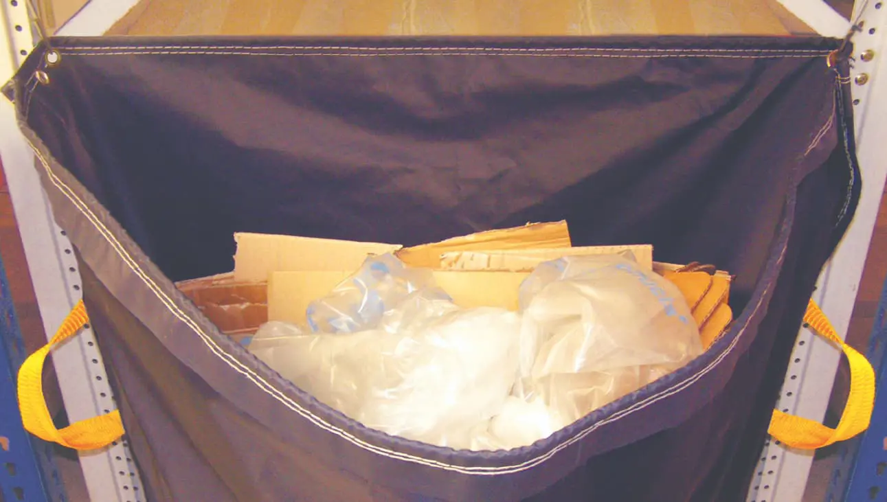 Die Hängesäcke für Abfallsortierung RackSack sind aus robustem, wasserabweisendem Polyester gefertigt und hält den rauen Bedingungen einer industriellen Umgebung stand.