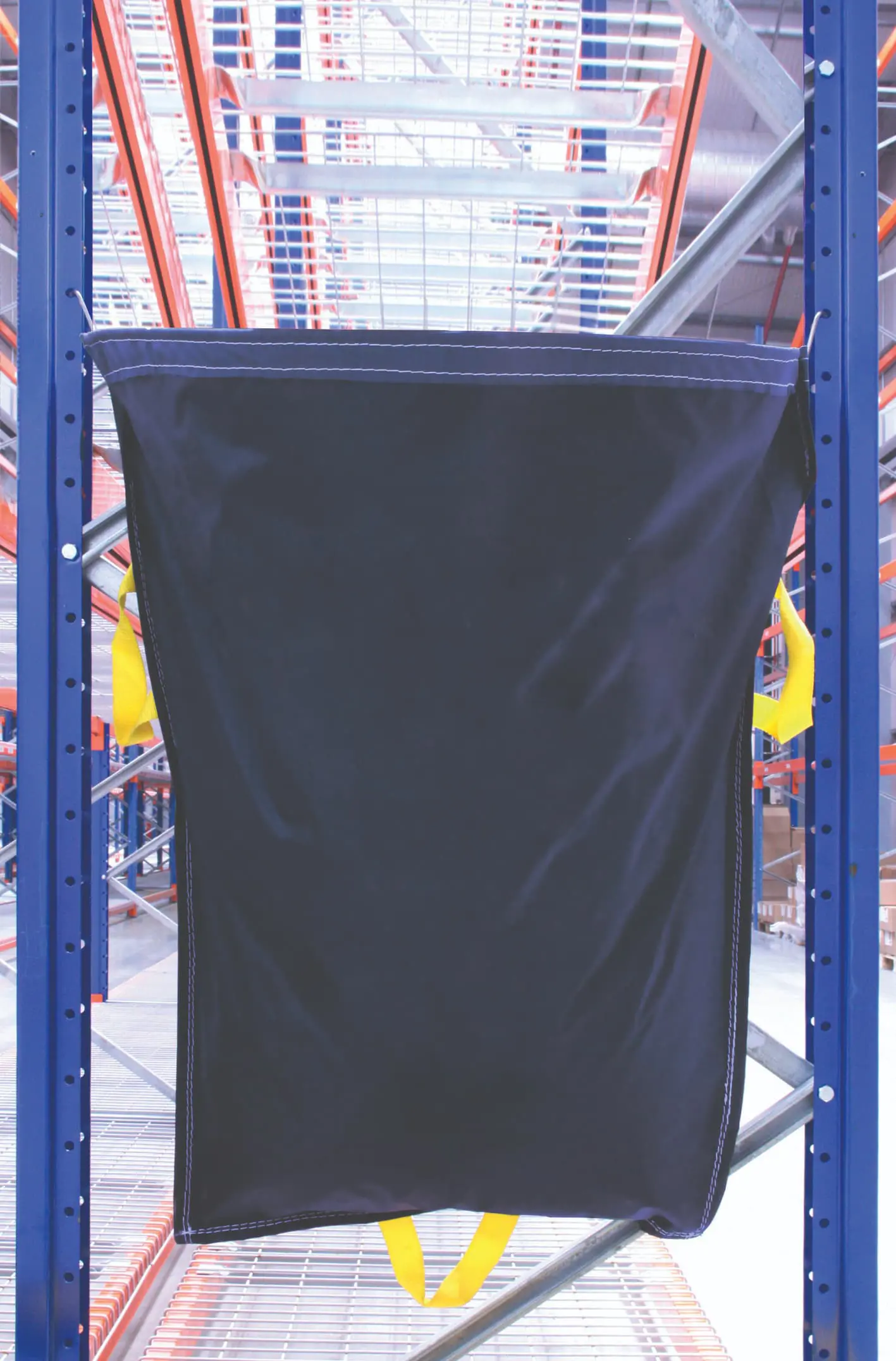 RackSack-Säcke lassen sich dank der flexiblen Befestigungsmethode mit den Haken "S" (im Lieferumfang enthalten), die speziell für Lagerhallen entwickelt wurden, leicht an jeder Struktur aufhängen.
