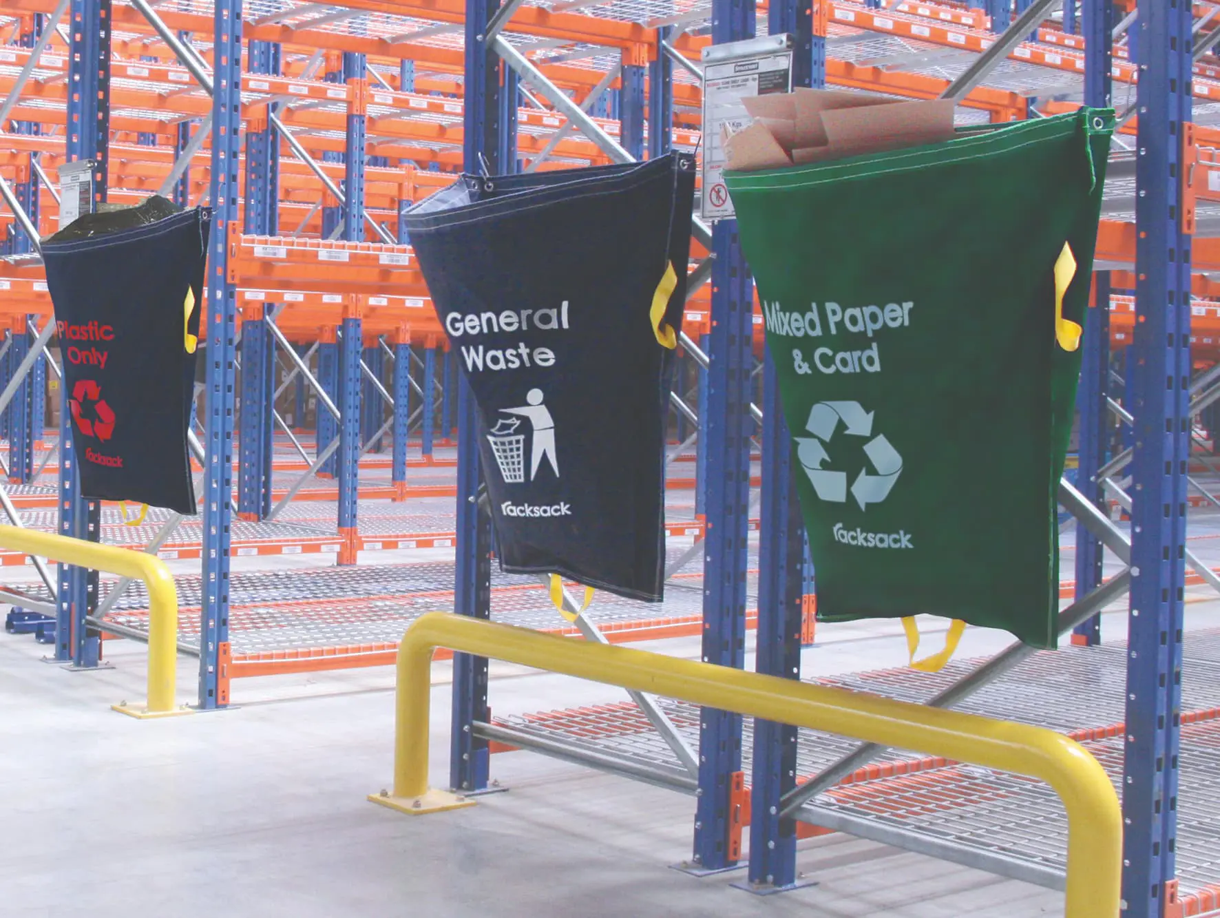 Die Hängesäcke für Abfallsortierung RackSack sind aus robustem, wasserabweisendem Polyester gefertigt und hält den rauen Bedingungen einer industriellen Umgebung stand.