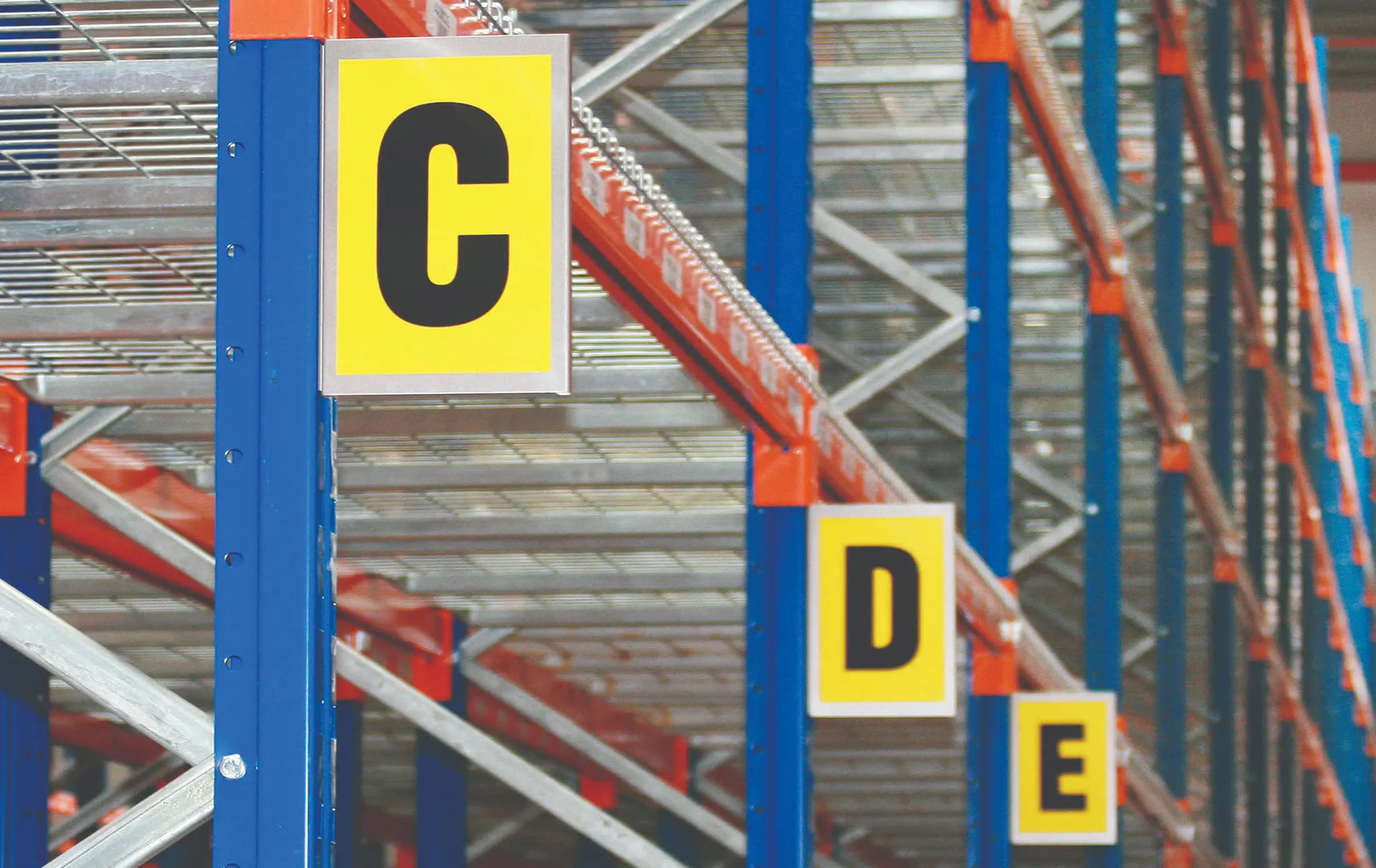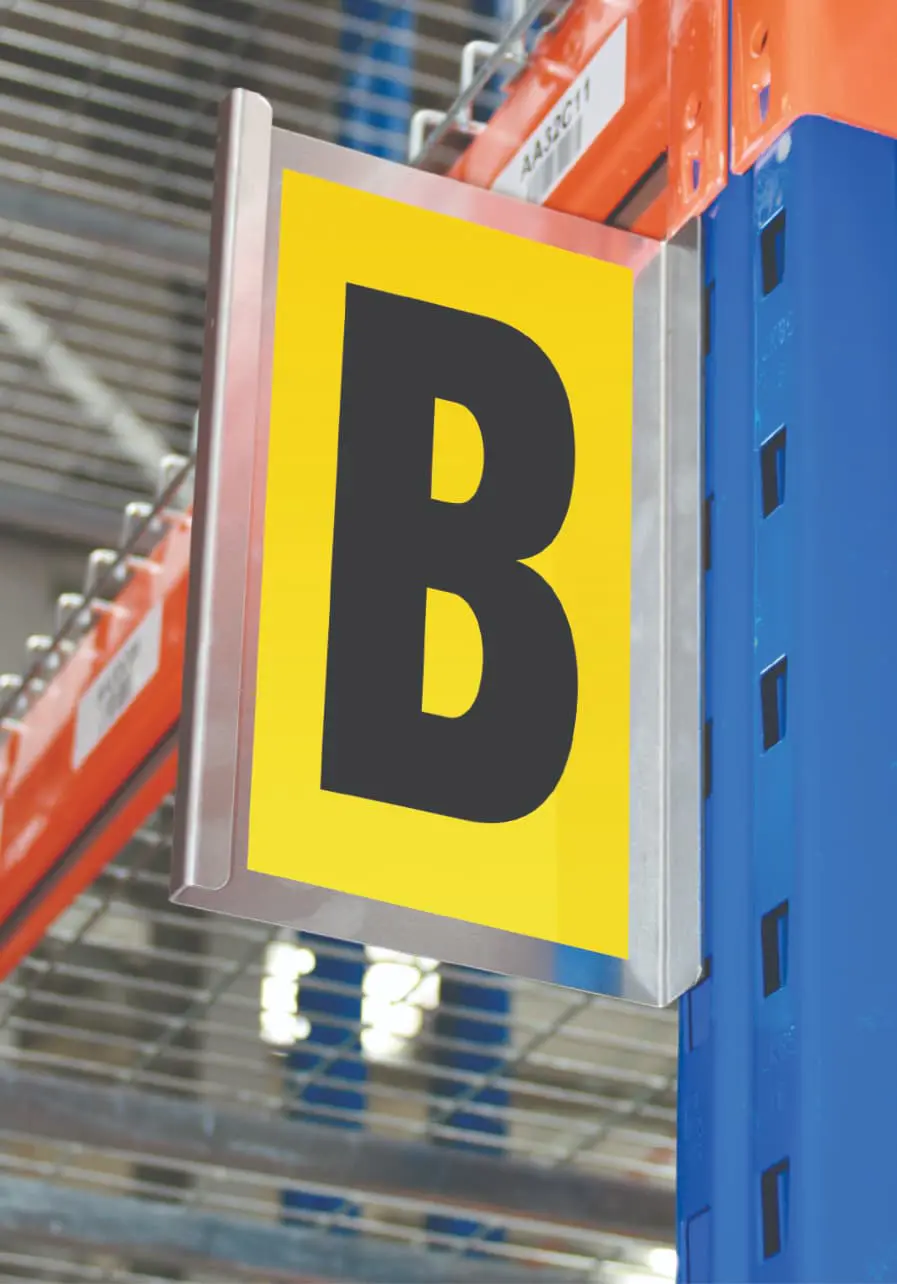 Palettenregalmarkierungen und C-Gänge sind klare und sichtbare Regalkennzeichnungen. Die Markierungen können ohne Bohren angebracht werden.